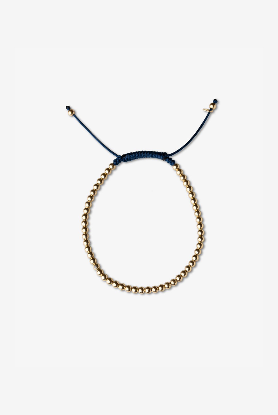 Pulseira às bolinhas em ouro amarelo com algodão azul
