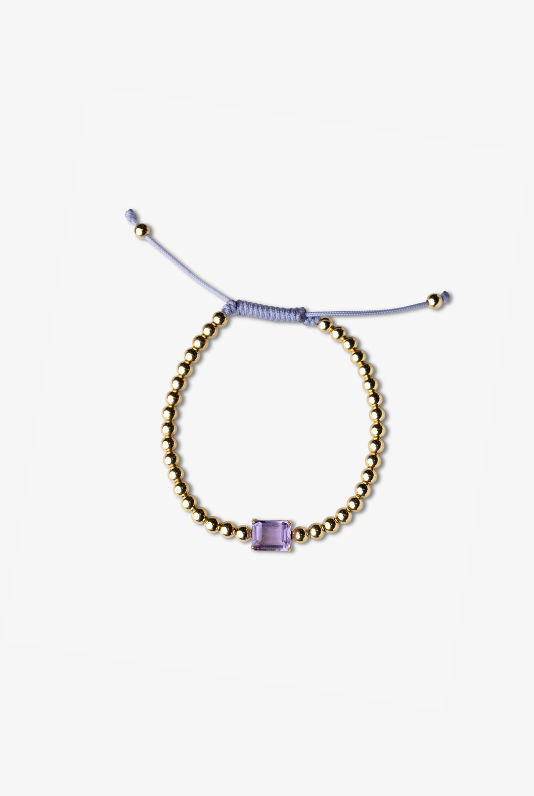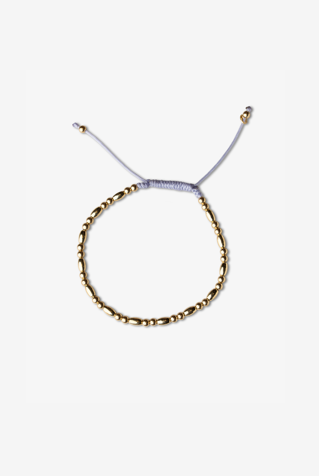 Pulseira às bolinhas em ouro amarelo com algodão lilás