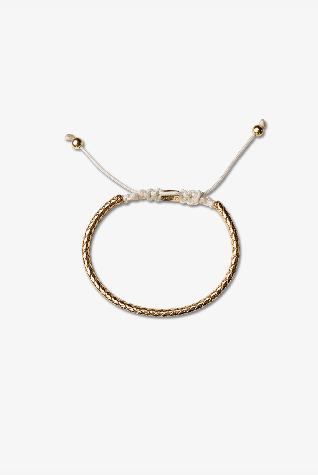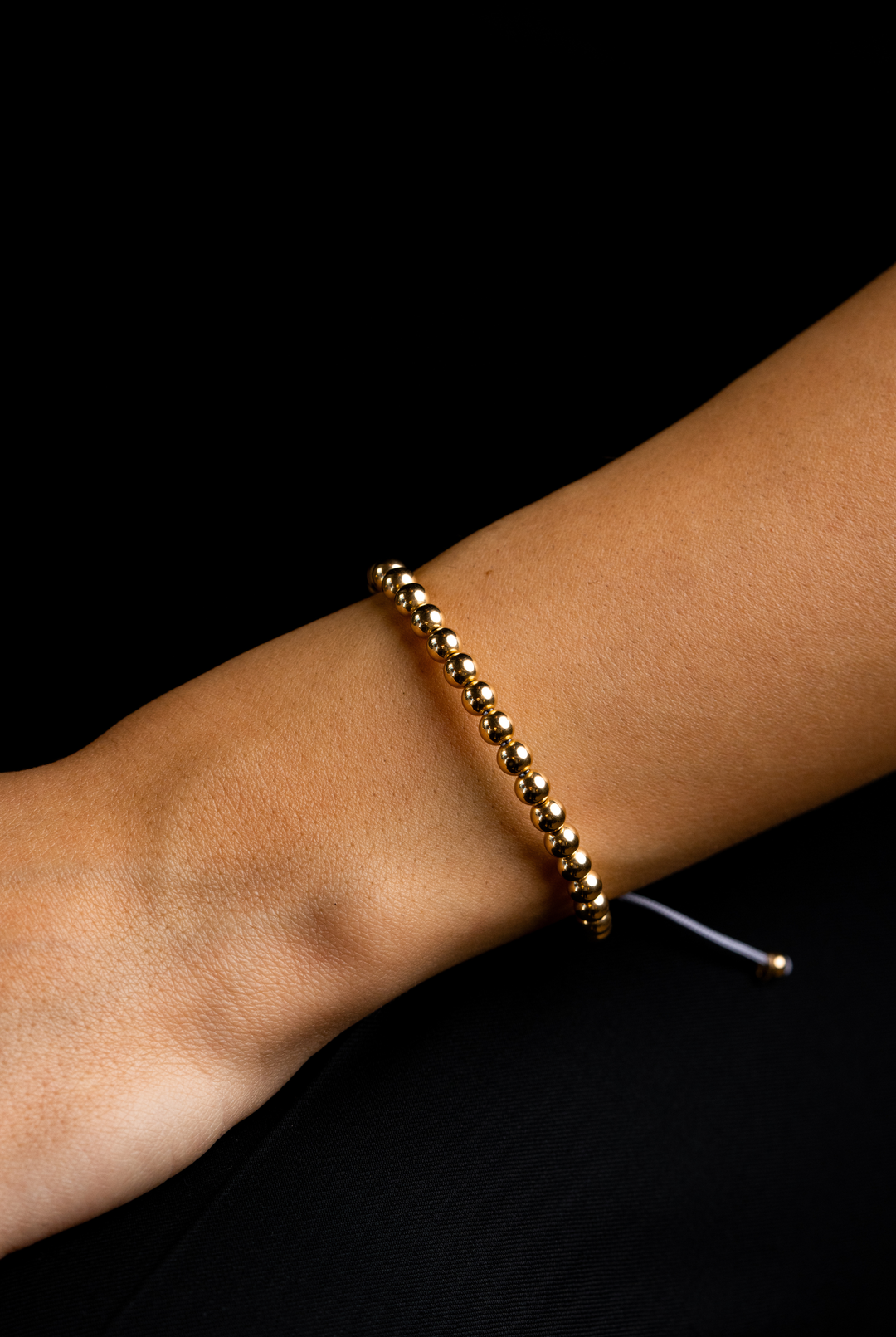 Pulseira às bolinhas em ouro amarelo com algodão bege