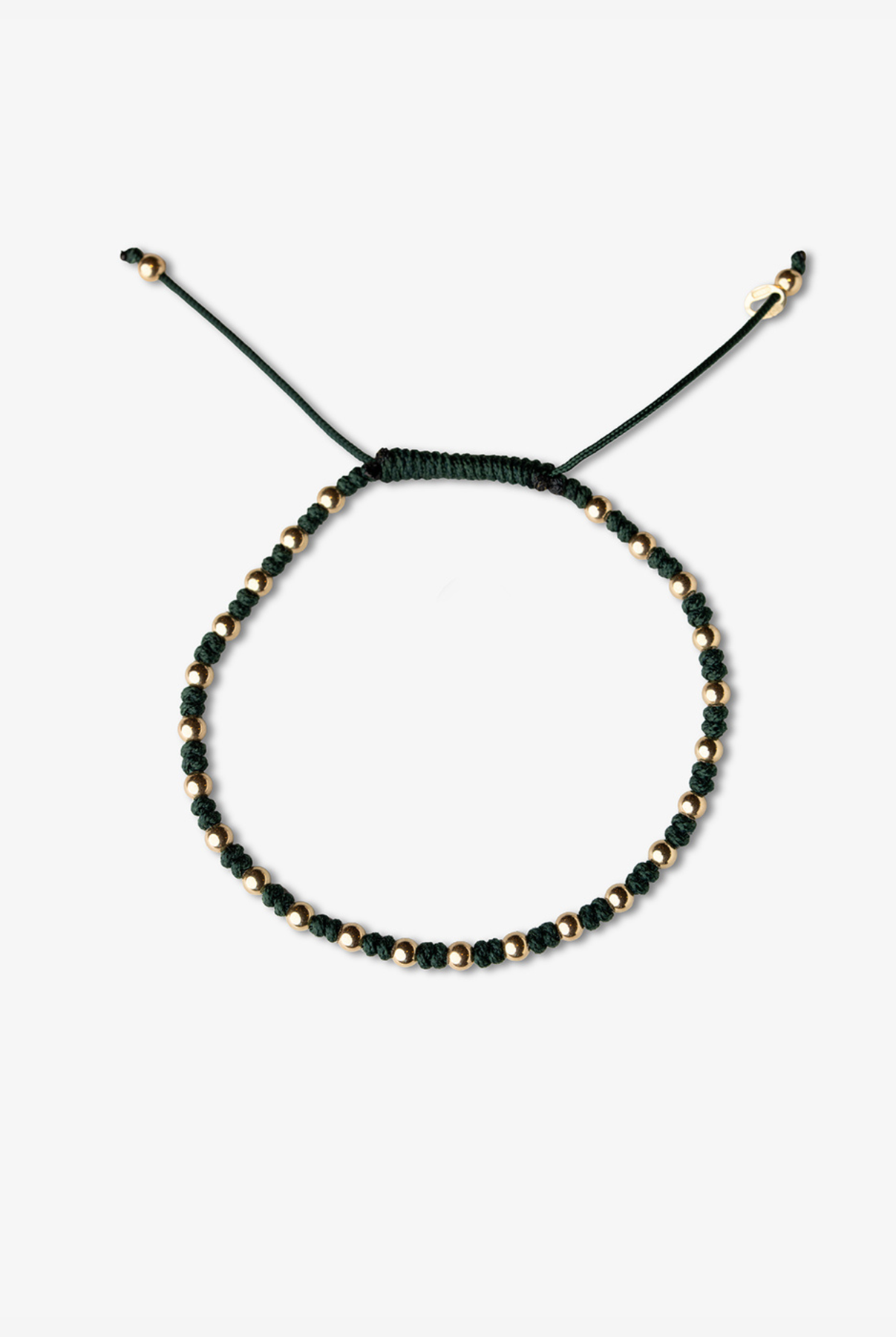 Pulseira às bolinhas em ouro amarelo com algodão verde escuro