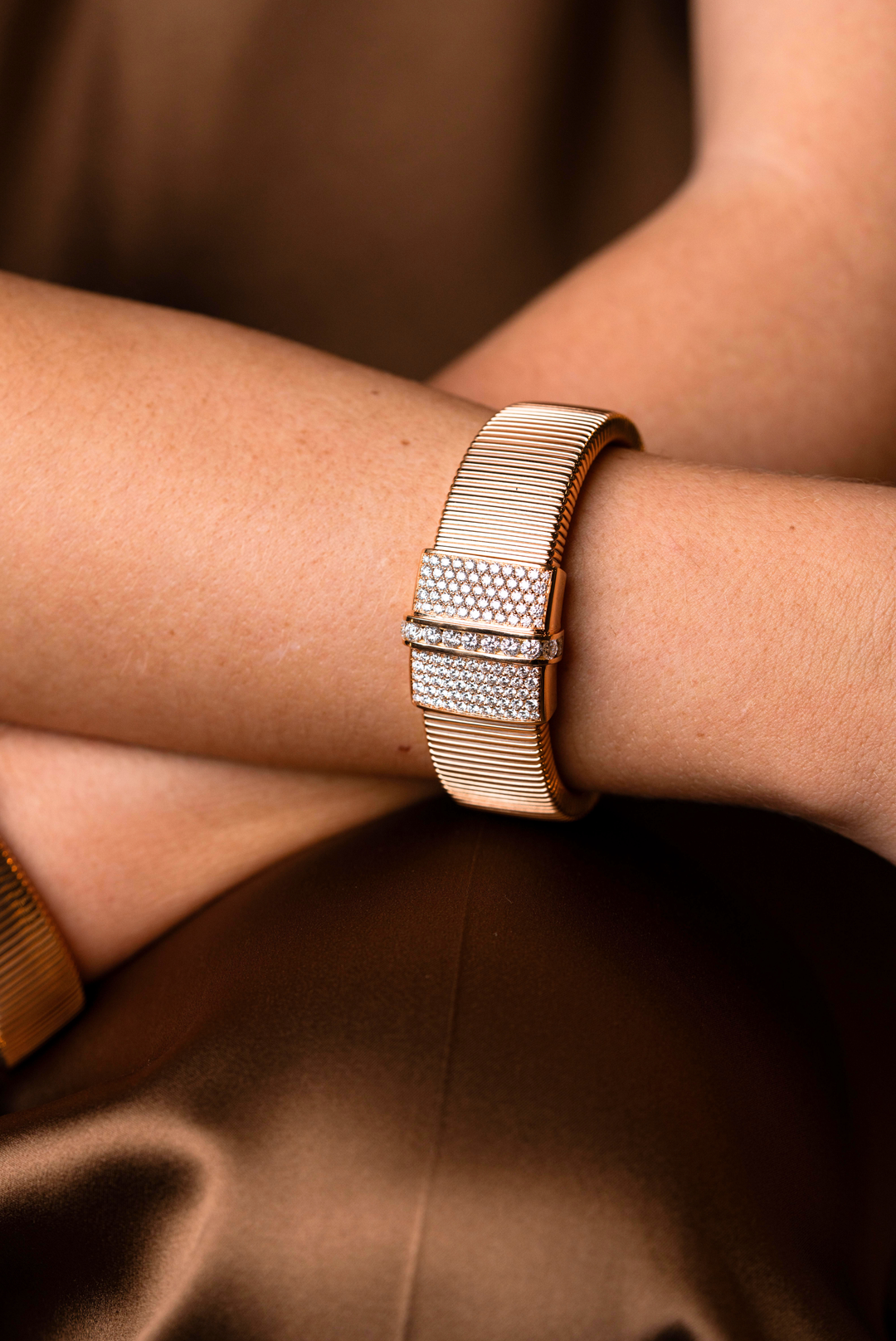 Pulseira em Ouro Rosa com textura e Diamantes
