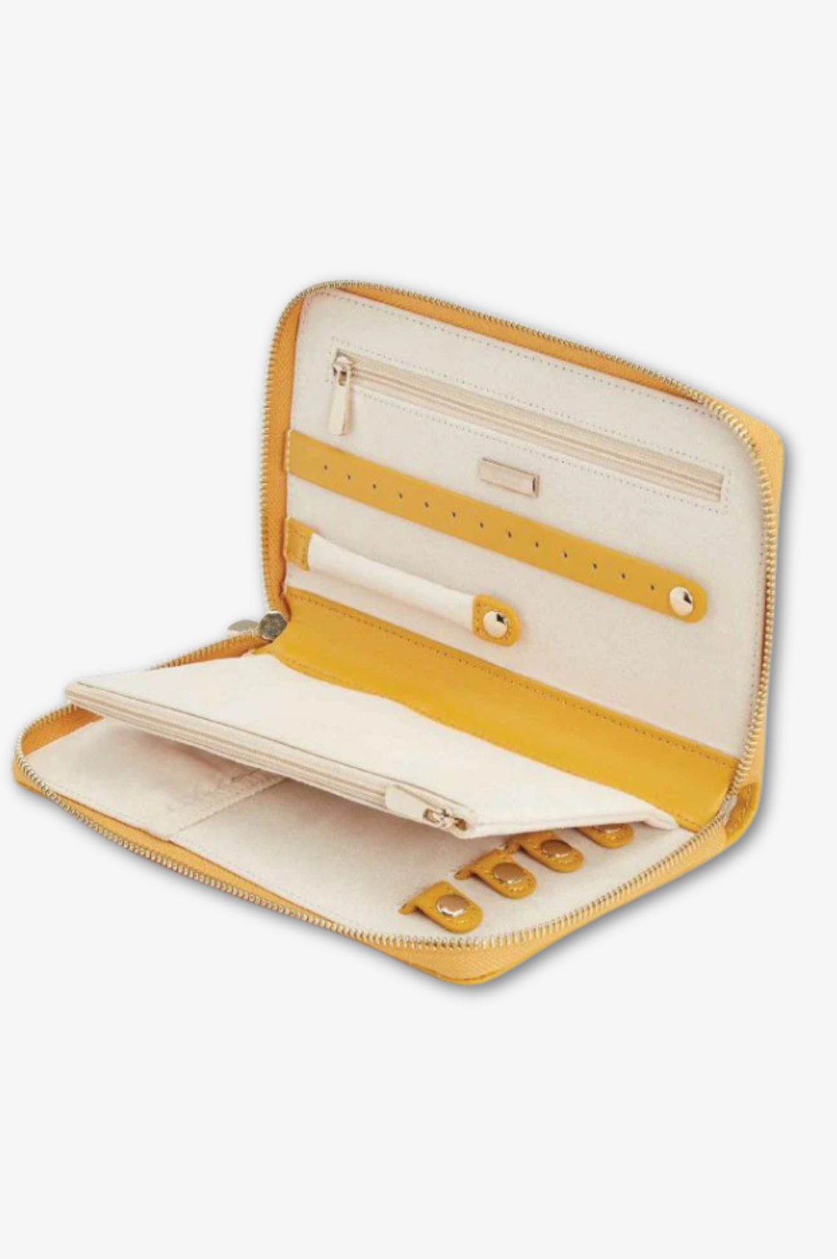 ARMAZENAR 1 aba de brinco, 1 aba de anel, 2 compartimentos com zíper, 4 ganchos de colar com bolso