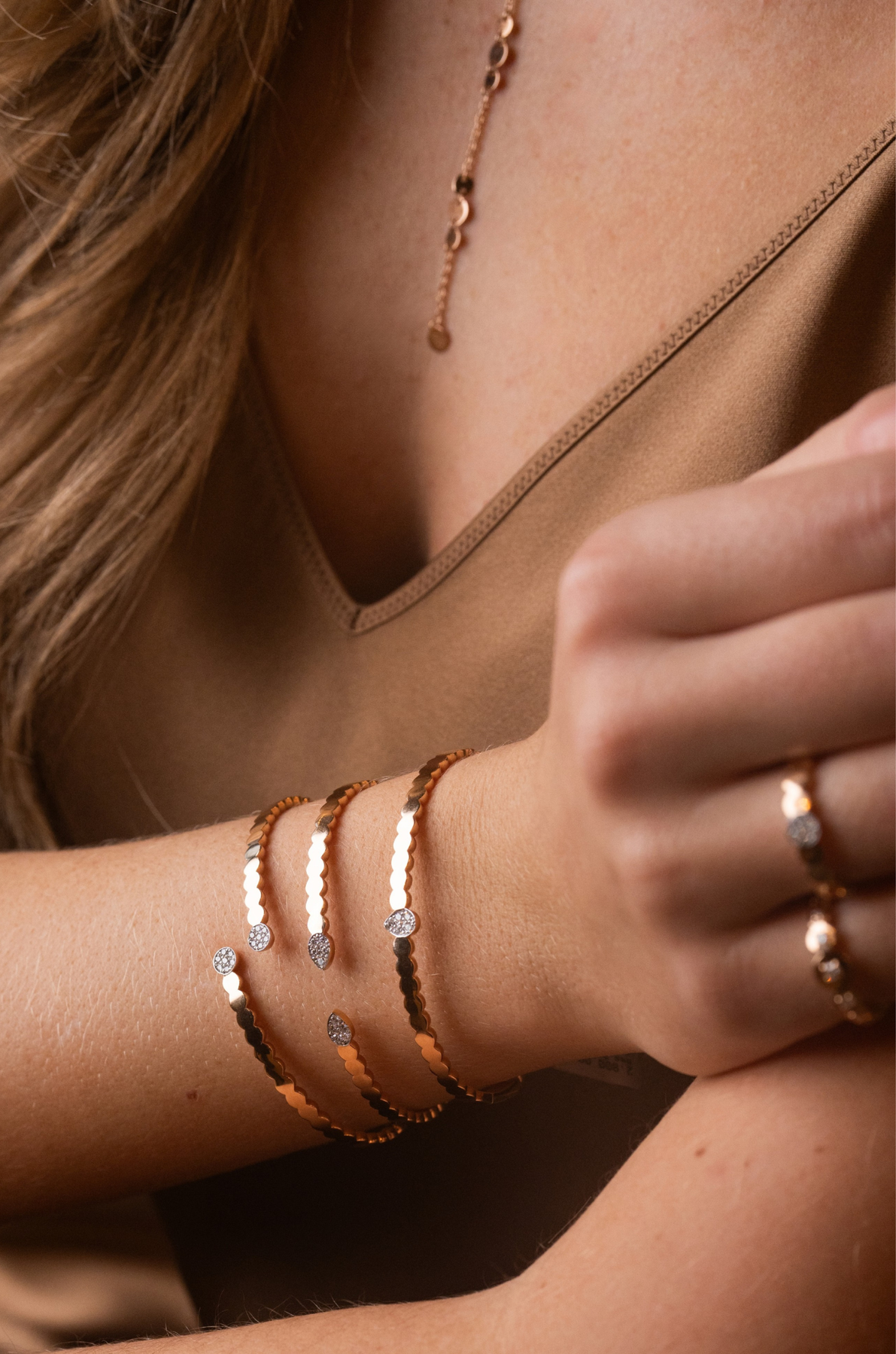 A celebration of love and elegance. Crafted in radiant pink gold, this delicate bracelet adorned with brilliant diamonds — a timeless symbol of connection and devotion.